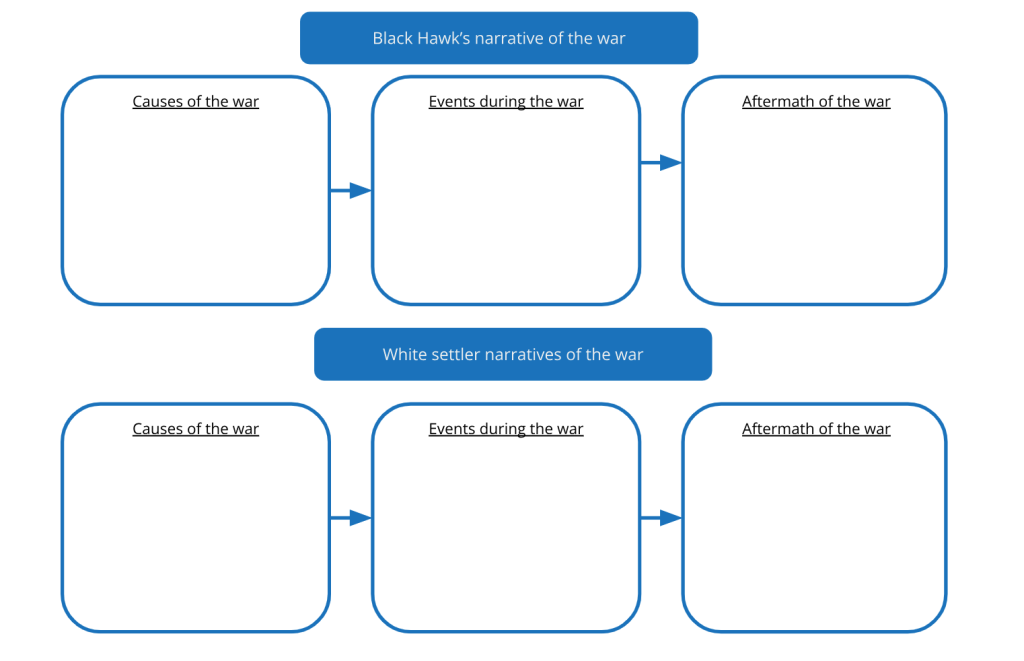 21. Historians identify what happened in the past by pulling together different memories of and perspectives on an event. Now that your graphic organizers are complete, compare Black’s Hawk’s narrative and white settler narratives of the war.