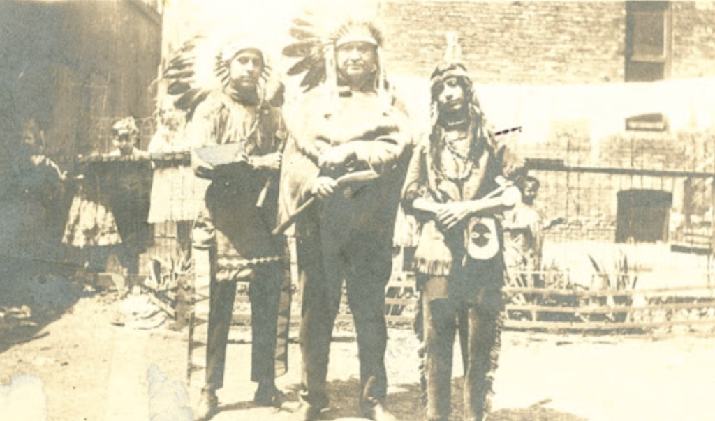 Kiihkantanka, or Charles Strack (Myaamia) with his sons George and John, starring as extras in a movie or short that was filmed in Chicago. Image via aacimwahkionkonci, Stories from the Land, by the Miami Tribe of Oklahoma
